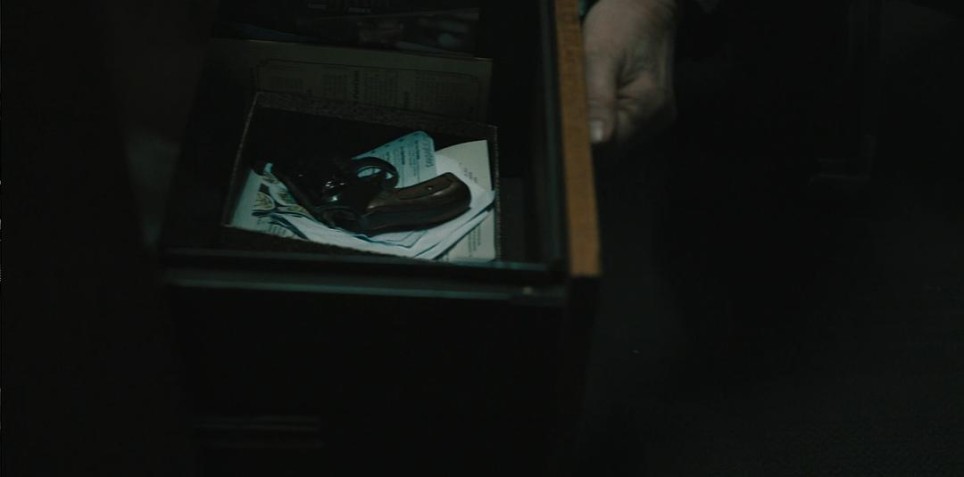 但其实可能不是开玩笑。至少在第二集结尾,当保安队来封锁斯劳屋的时候,Lamb的枪真的放在了第三个抽屉里: