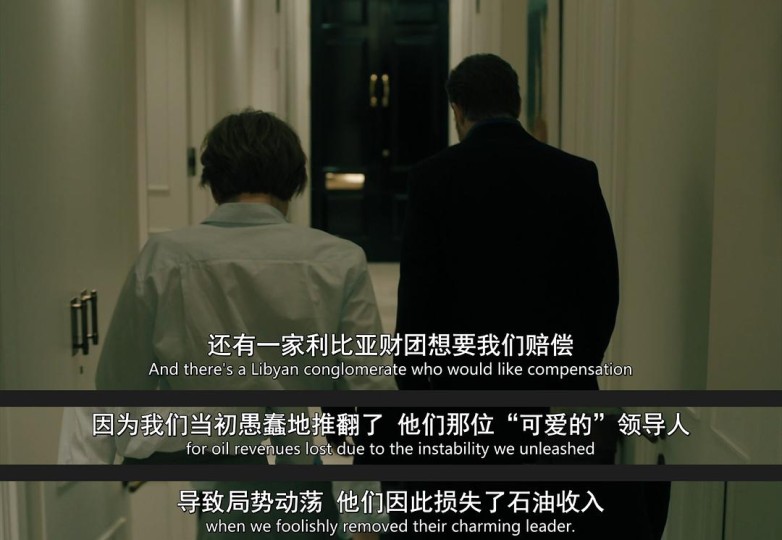 以及,第二集Peter Judd在拜访Diana的时候提到了他的利比亚客户因为英国导致局势动乱而寻求补偿,可能指的是2011年卡扎菲下台事件: